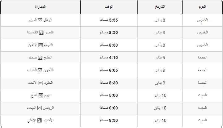 جدول مباريات الجولة 14 من الدوري السعودي (بتوقيت السعودية)